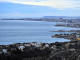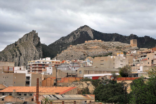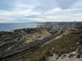 El Kadjar en primer plano, a continuación el Castillo de la Torre Grossa, al fondo el Mar Mediterraneo visto desde Xixona