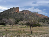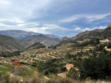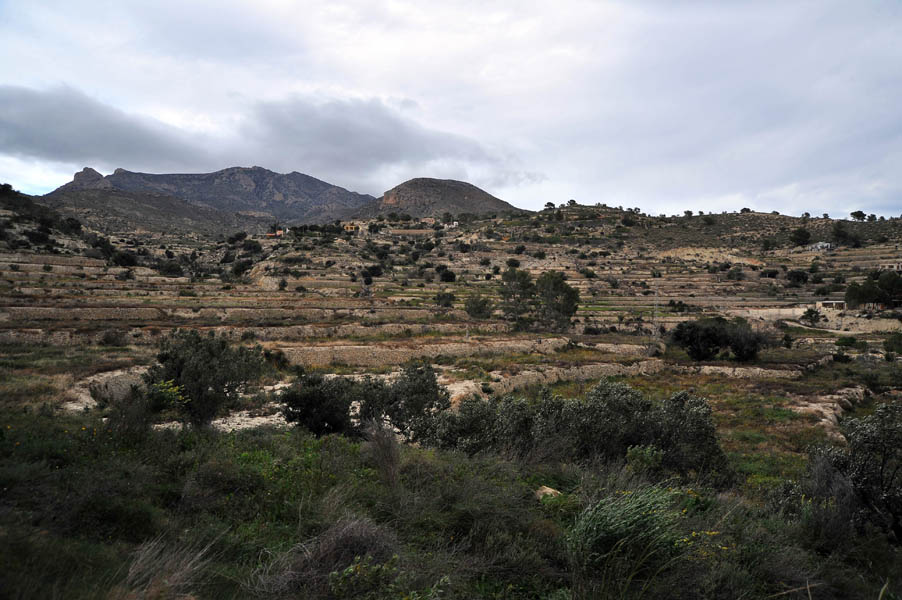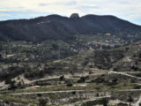 Al cruzar la carretera que llega a Relleu (que en valenciano significa “relieve”), dada la accidentada orografía que conforma su término municipal, vamos girando dirección oeste, dejando el pueblo a nuestra derecha e introduciéndonos en la Sierra de la Grana, ofreciéndonos unas buenas vistas del Pico de Els Plans en la distancia.