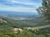 Poco después, en la distancia vemos Aigües. Situado a 341 metros de altura, se trata de un verdadero mirador sobre el Mediterráneo, con bosques de pinos altos y frondosos. Desde la pinada, en los días claros, se puede ver la Isla de Tabarca en la línea del horizonte y, cuando empieza el atardecer, se pueden observar tempestades sobre el mar. Es un bosque mediterráneo con senderos y bancos de madera para descansar bajo la sombra.