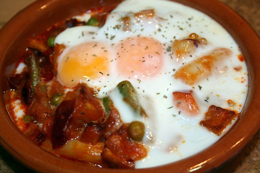 Los cocidos de garbanzos y verduras, con pringada; las cazuelas de habas o de alcachofas con chorizo; la ardoria, el cocido ursaonés, las repapalillas de bacalao o el guiso de tagarninas; las papas aliñás, las gachas, las tortas fritas, el arroz con castañas, la jarria… y por supuesto las aceitunas de mesa, las variedades que aquí se cultivan son la autóctona Morona, la Manzanilla, la Gordal, la Hojiblanca o Verdial.
