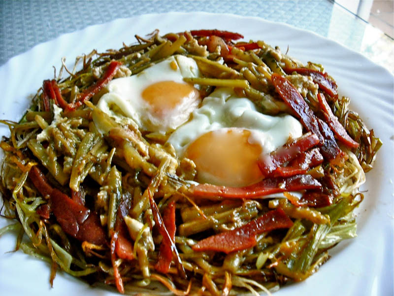Tagarninas con huevos, exquisito. A la Tagarnina también se la conoce, entre otros nombres, como cardillo o cardo de olla.