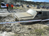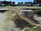 Como es habitual después de la comida, con el cerebro cargado de azúcar por los alimentos (la mayoría de “dieta”), la cafeína del café y bien hidratados, las ganas y atrevimiento que citaba anteriormente se desbordan, por lo que el “ahogamiento” de coches continúa en cada una de las charcas que han ido convirtiendo buena parte del agua en barro y la diversión de los espectadores aumenta.