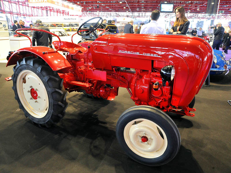 Junto a él y compartiendo stand, se encontraban un Porsche 928 GTS, aprovechando que se conmemoran los cuarenta años de este modelo; un 911 Carrera de 1988, restaurado por el Centro Porsche Madrid Oeste, un motor de 911 Turbo y un curiosísimo tractor de la marca de los años 50, un P111 diesel, de un solo cilindro y una potencia de 12 caballos que su propietario sigue utilizando, ya no para tareas del campo, pero si para sacarlo “a pasear”.