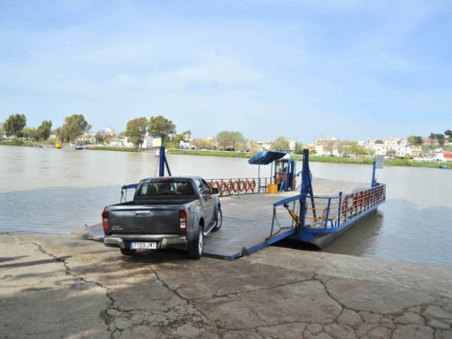 Sin mucho esfuerzo pero con gran placer, proporcionado por el interesante recorrido, llegamos a Coria del Río, o casi, ya que primero habremos de cruzar el Guadalquivir en La Barca de Coria, que cruza el Guadalquivir para unir Coria con Dos Hermanas. La barca juega un papel importante en la procesión de la Virgen del Carmen del 16 de julio y en la peregrinación anual a El Rocío, ya que una veintena de hermandades rocieras cruzan el río en ella con sus carretas.