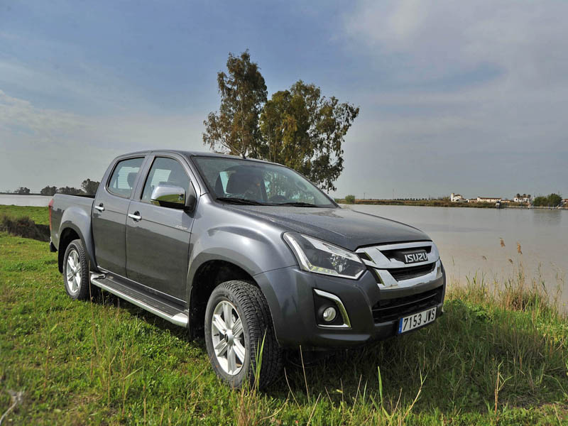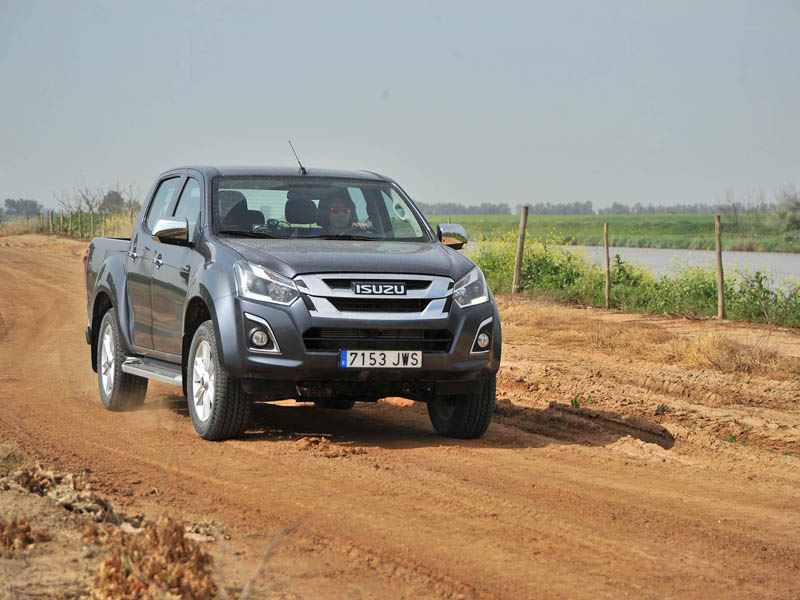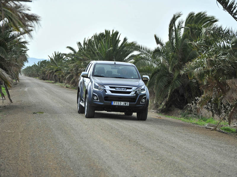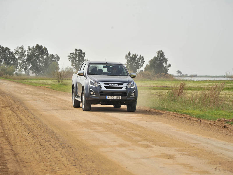 Evidentemente, el mismo vehículo, con el mismo neumático, no puede llevar las mismas presiones si lleva o no, 1000 kg. de carga en su caja y como nosotros no los llevábamos, decidimos “buscar” las presiones que mejor le iban a la D-Max para circular por campo, y partiendo de los 2-2.2 kg. cm2 recomendados para el eje delantero, que con la caja de carga vacía tiene que soportar más peso que el trasero, dimos con la presión “perfecta” para circular por todo tipo de pistas obteniendo el mejor compromiso entre comodidad, agarre en curva y tracción: 1,9-2,0 Kg. en el eje delantero; 1,8 Kg. en el trasero. Suficientemente blando como para que el neumático cumpla su labor de amortiguación en zona de baches; suficientemente duro como para circular por carretera con tranquilidad y seguridad por cortos recorridos.
