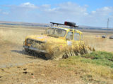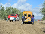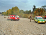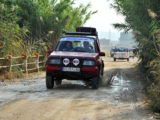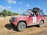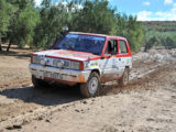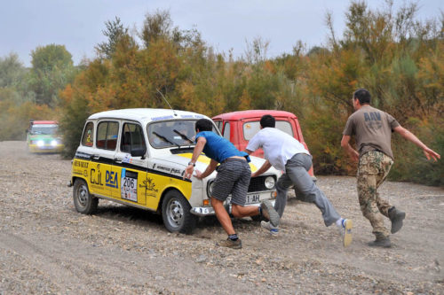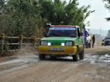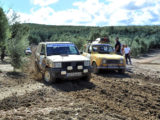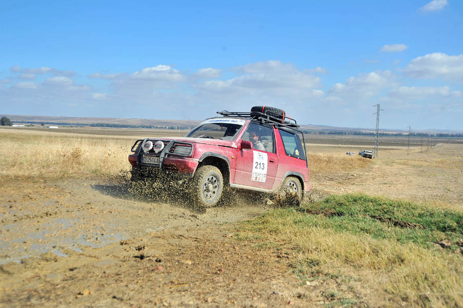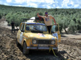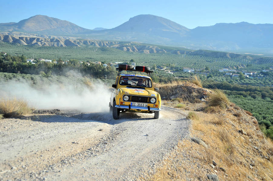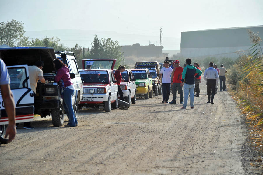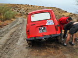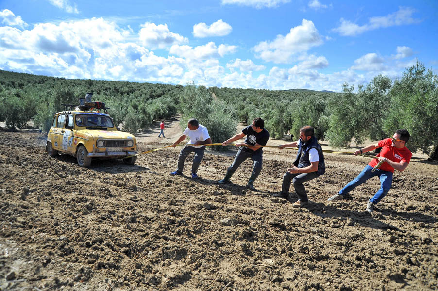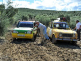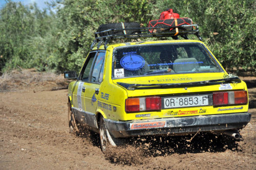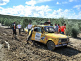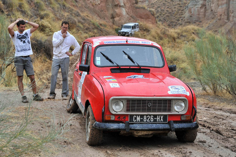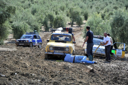 Mención especial merecen los participantes franceses que se enfrentaban a su primera aventura off road a lomos de su efectivo Renault 4 Simpar y que a pocos Km. de la salida doblaban un brazo de la suspensión trasera, teniendo que hacer cerca de 40 km. con una rueda que a cada poco se les caía hacia dentro y sin transmisión trasera. Los dos coches de organización que hubieron de escoltarle a lo largo de este complicado tramo hasta poder alcanzar la carretera tampoco lo pasaron nada bien, debido a la insistente y abundante lluvia que a lo largo de toda la jornada se ocupaba de “regar” buena parte de Andalucía y que dejó algunos de los tramos de pista totalmente impracticables.