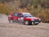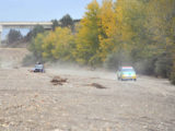 Polvorientos caminos, pistas duras, vadeos sin gota de agua y un calor más propio del pleno verano, eran los elementos con los que tenían que bregar pilotos y copilotos en una etapa que aunque corta (18 Km.), ya ponía en apuros alguna mecánica y las dotes de navegación de algunos copilotos.