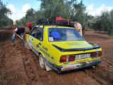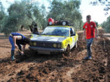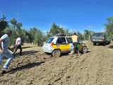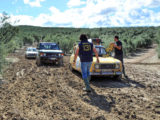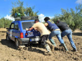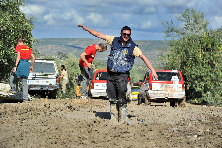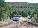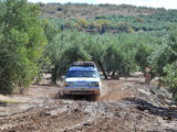 Por suerte, en la zona por la que transcurría la etapa, que nos habría de llevar desde Jódar hasta Villafranca de Córdoba, las lluvias habían sido más moderadas y el terreno en su mayor parte era transitable con mayor o menor facilidad… hasta ya bien avanzada la etapa, en que los participantes se encontraron con dos largos tramos de pista de barro en medio de sendos olivares que, en principio ofrecieron la diversión que ofrece el conducir un coche que parece tener vida y opiniones propias, yéndose de todos lados y cruzándose continuamente.
