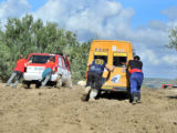Mientras, los 4×2 tampoco lo tenían fácil, y tras un inicial tramo de carretera, llegaba el momento de atacar unas pistas que no habían sido capaces de absorber el agua que en tan poco tiempo les había caído, convirtiendo la arena en verdaderas pistas de patinaje que hacían totalmente incontrolables los coches y que una vez tras otra les llevaban a quedarse varados en el barro.
