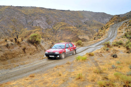 Fue precisamente en estas primeras ramblas cuando unos profundos ríos de pequeña piedra y arena pusieron en apuros a muchos participantes, que de esta manera se encontraban con una nueva situación, tener que bajar del coche a empujar… sin embargo, la solidaridad salió a relucir desde el minuto uno, y pudimos ver como a cada coche varado por la arena, se acercaban otros participantes con la intención de ayudar…
