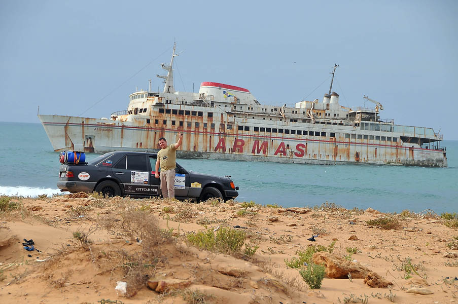 En la bodega de vehículos quedaron coches, autocaravanas y camiones con mercancías que se han quedado encerrados para siempre dentro de un barco que ya forma parte del paisaje de Tarfaya.