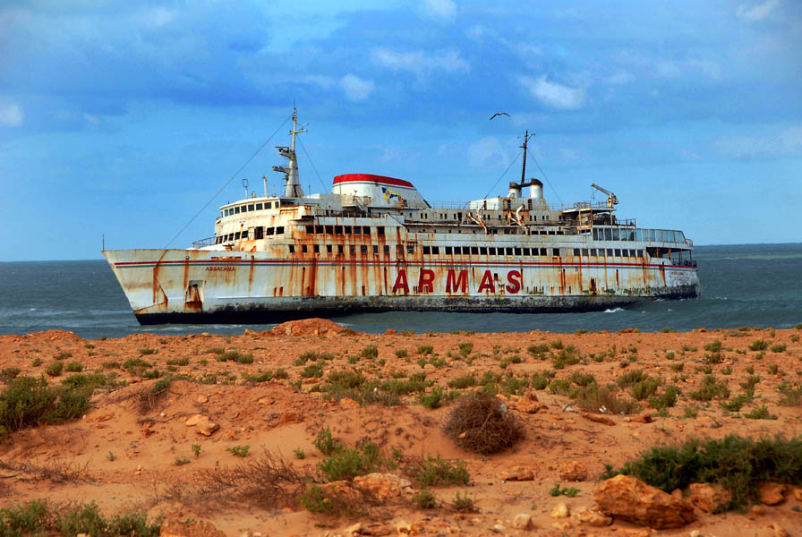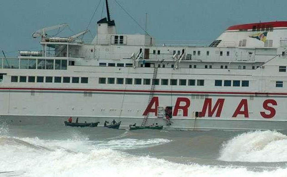 Me refiero, como en las fotos se puede ver, al ferry “Assalama”, embarrancado desde el 30 de abril de 2008 en los fondos arenosos de Tarfaya, cuando regresaba a Puerto del Rosario, en Fuerteventura, situada a 98 kilómetros de Tarfaya.