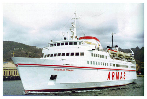 Cuando Transmediterranea retiró las líneas interisulares de Canarias, el servicio fue asumido por Naviera Armas, destinando para ella al Volcán de Tenagua, cuyo estreno no pudo ser más decepcionante, pues una serie de averías obligaron a la suspensión del servicio hasta la puesta a punto de sus motores.