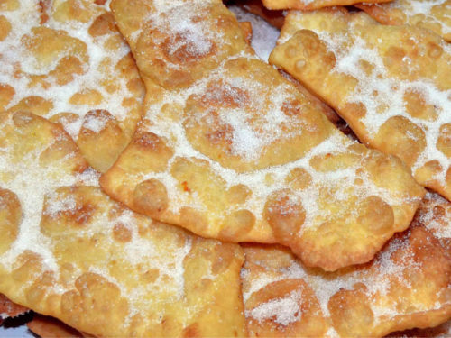 La comida típica del entroido en las comarcas del interior es contundente: la androlla, el botelo, el cocido o el caldo son la piedra angular para los entroideiros (también el resto del año), platos a los que podemos añadir el lacón con grelos, el cabrito, el cordero o, ya en los postres, las indispensables “filloas”, especie de tortilla fina que se hace de caldo limpio y colado (si es de cocido, mejor) o de leche; y las “orellas”.