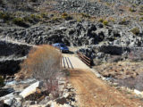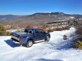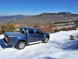 Seguimos ya en bajada, encontrándonos tramos totalmente secos y otros con gruesos colchones de nieve que, en ocasiones, hacían que las ruedas se hundieran casi hasta el eje. Reductoras, desconectar los controles de tracción y estabilidad y decisión, fueron imprescindibles para superar algunos tramos que superaban con mucho, las capacidades de los neumáticos mixtos (más de carretera que de otra cosa), con los que venía calzada la D-Max.
