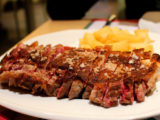 Aunque por los pelos (las tres de la tarde pasadas), llegamos a Hoyos a la hora que había que llegar, la de la comida, y por suerte es uno de esos lugares donde se pueden saborear los platos típicos de la comarca.