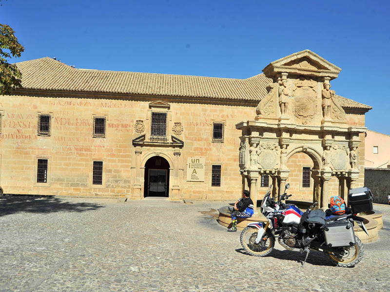 Nuevas malas carreteras, buenas pistas después y estrechas y poco usadas finalmente,nos acercarán hasta el mismo centro geográfico de la provincia de Jaén: Baeza. En la escalera monumental del edificio plateresco del Ayuntamiento (en su primer escalón), está marcado un círculo que históricamente señala este punto como el centro geográfico del Reino de Jaén.