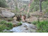 El “Salto de las Yegüas” de 22 metros y donde paramos a hacer fotos, la “Cascada del Rincón de las Ninfas”, la “Caída de San Lorenzo” o el “Salto de Pedro Pérez” son algunos de ellos. En poco más de 1.500 metros de recorrido montañoso, el río Riodeva desciende 500 metros: desde Los Amanaderos hasta su desembocadura en el río Turia, atravesando terrenos calizos, de rodeno y franjas de pizarra.