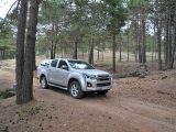 Aunque ya lo había apreciado circulando por carretera, esta primera pista, fácil en su mayoría, sirvió para indicarnos la mejora de comportamiento que tiene la nueva D-Max cuando se le instala el Hard Top trasero. Como se puede ver en las anteriores rutas no lo tenía instalado, y yendo la caja de carga vacía se obtenía el comportamiento más equilibrado con presiones en las ruedas traseras rondando el 1´8 – 1´9 Kg./cm2. Con el Hard Top montado y unas presiones de 2´2 el resultado es aún mejor, notándose aún más cómoda en todo tipo de terrenos (especialmente en los más bacheados), y sensiblemente más asentada y estable en carretera asfaltada de curvas (al menos la sensación, porque en la práctica, como veremos más adelante, es prácticamente imposible hacerla derrapar).