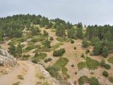 A continuación, seguimos en dirección al Pico Javalambre, no sin antes parar a hacerle unas fotos al coche inmerso en este curiosísimo paisaje que forma la sabina rastrera “pintando” la montaña a topos verdes.