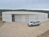 Antes de llegar a Arcos de Salinas nos desviamos a la izquierda para fotografiar Galáctica (Centro de Difusión y Práctica de la Astronomía), un centro turístico sobre el espacio ligado al Observatorio Astrofísico de Javalambre, situado a 10 kilómetros de este y también promovido y gestionado por el Centro de Estudios de Física del Cosmos de Aragón, que está operativo desde 2018.
