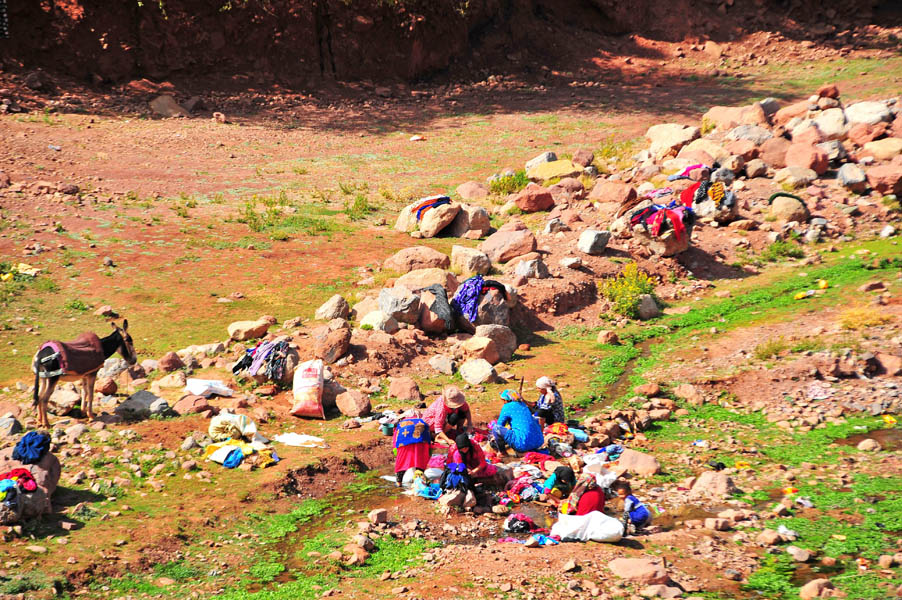 La vida en el Alto Atlas sigue el ritmo de siglos pasados, una vida dura en la que la ropa, se sigue lavando en el río.