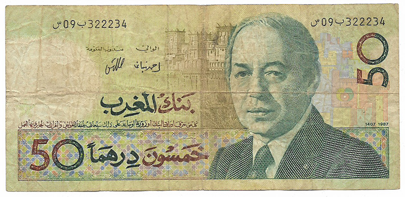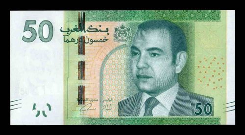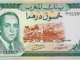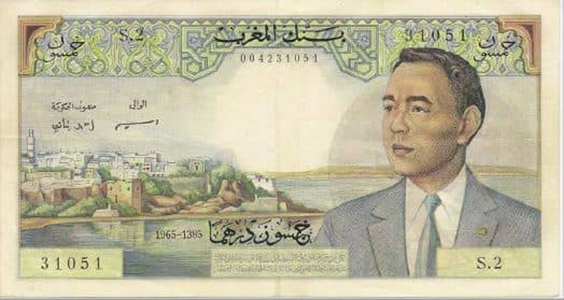 Uno de los billetes más buscados es el de 50 dh emitido por primera vez en 1965. Primer billete con el retrato de un joven Mohammed V y que, como era habitual en aquella época, tuvo diferentes variaciones dependiendo de sus años de emisión 1965, 1966, 1968 y 1969. Un billete de esta serie en perfecto estado de conservación ronda unos precios de entre 200 y 500 €, dependiendo de la subasta y el año de emisión.