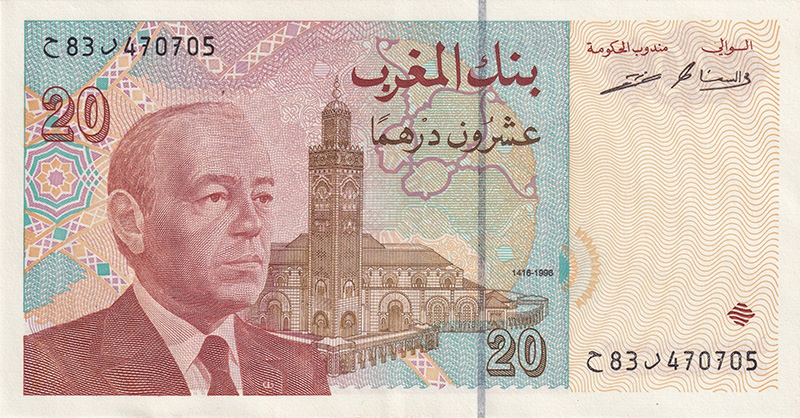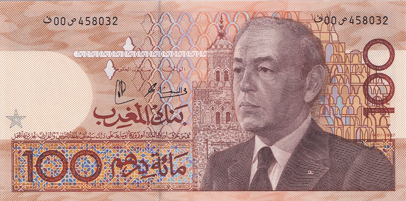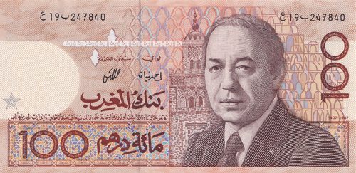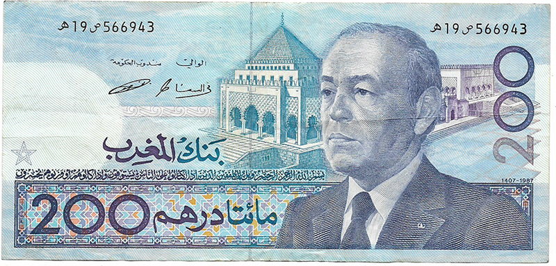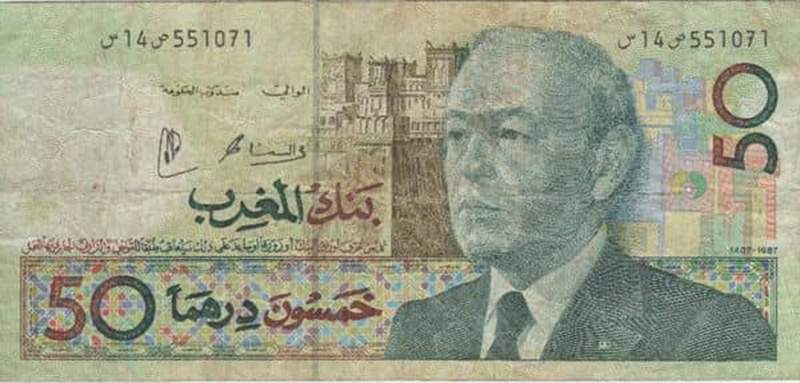 Series de los años 80 y 90 (ej. Serie 1987, Serie 1996): Continuaron con la tradición de los retratos reales (principalmente Hassan II) y se enfocaron en temas nacionales, paisajes y desarrollos económicos. Los valores comunes eran 10, 50, 100 y 200 dirhams.