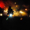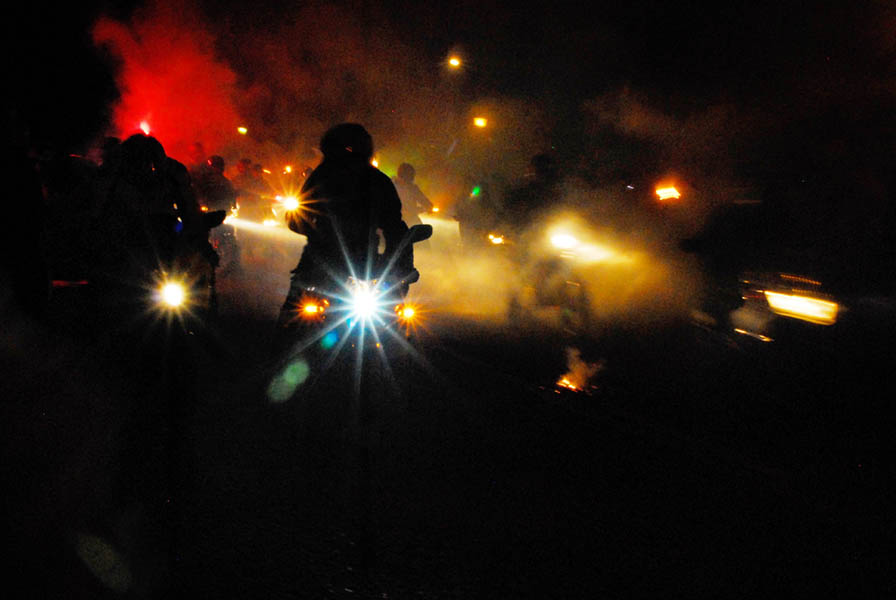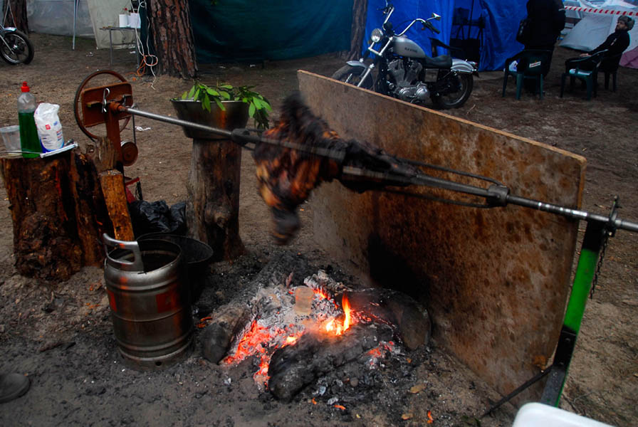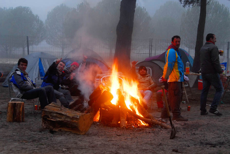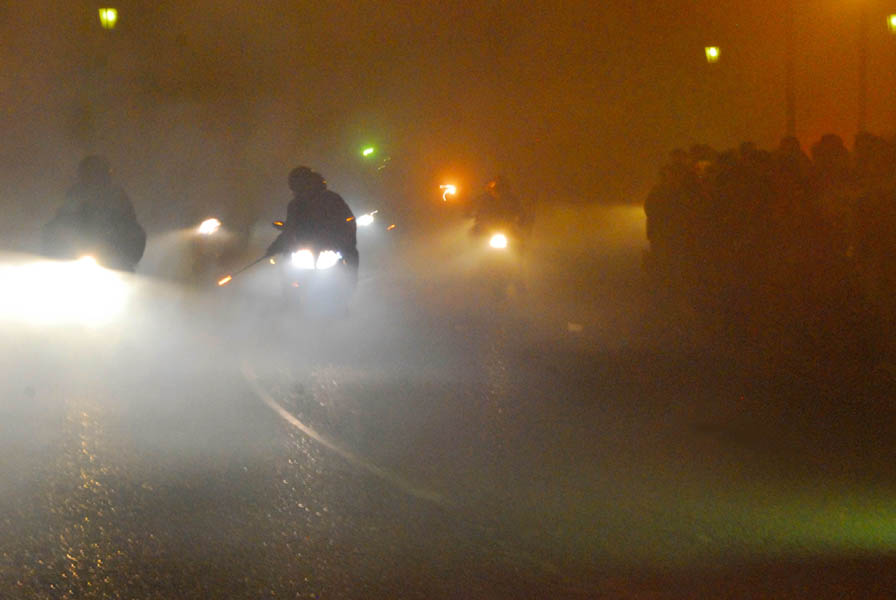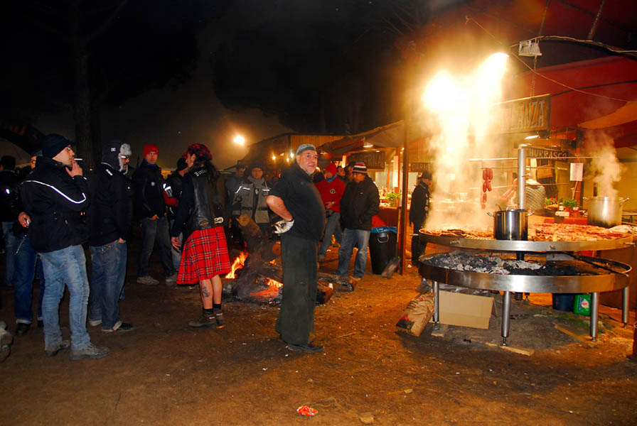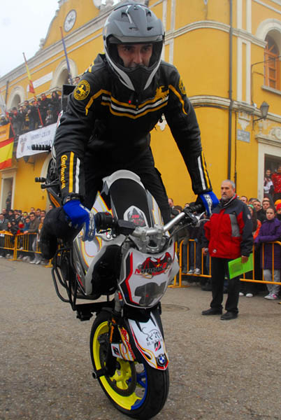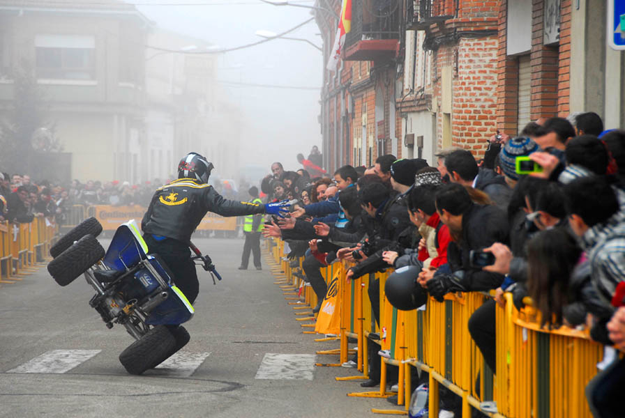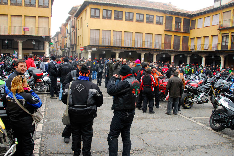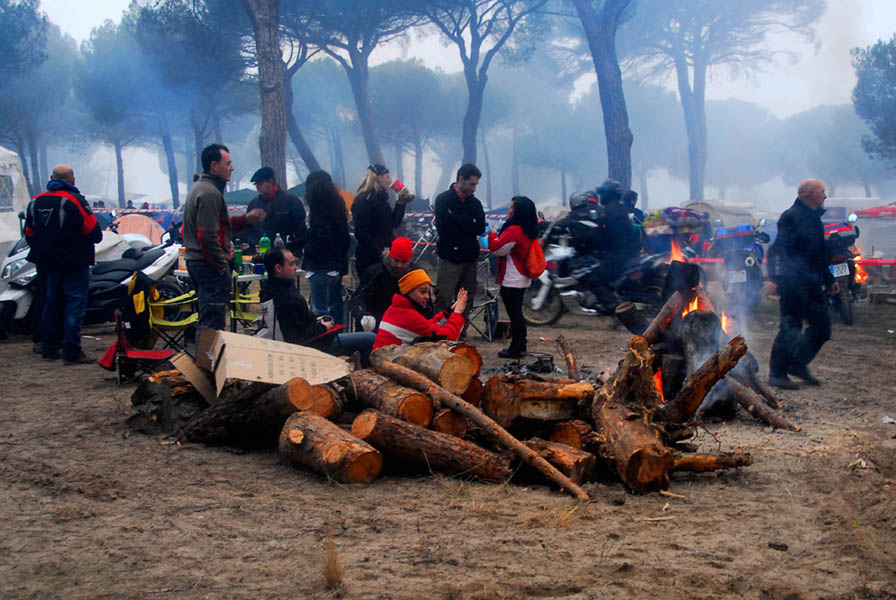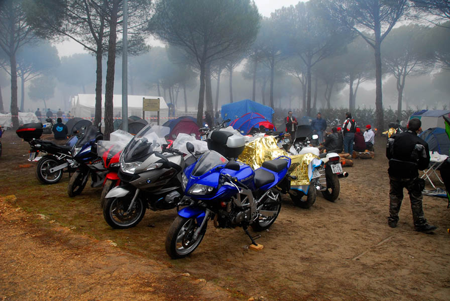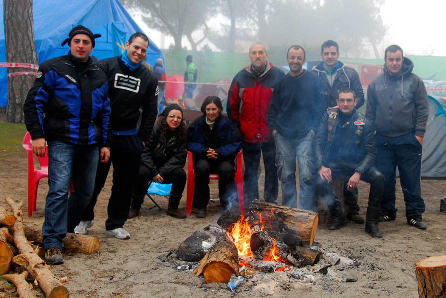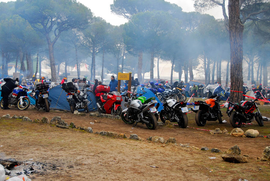 El sábado también, se celebra el desfile de las antorchas, que ascendiendo por el puente sobre el río Duero, lleva la caravana de motos hasta el mismo centro de la ciudad de Tordesillas, este año la densa niebla deslució un poco el espectáculo de poder ver bien las antorchas y los fuegos artificiales, sin embargo, el espíritu no se resintió lo más mínimo. A continuación, para todos los gustos, Tordesillas lleno hasta la bandera de gente y la zona de acampada… igual, tanto la carpa principal con el concierto de la banda The Bon Scott Band, como la carpa secundaria con música “bacalao” (lastima que no fuera al pil-pil), y la zona de acampada llena de grupos de moteros alrededor de su hoguera disfrutando de sus colegas, una agradable charla y la importante intendencia que muchos traen, en la que no les falta ni comida, ni bebida, ni ganas de diversión. En la carpa de KmCero se repartieron varios miles de caldos, especialmente el sábado, cuando la gente llegaba con frío de verdad debido a la intensa niebla, y paseando por aquí y por allí te dabas cuenta de que esta es una concentración perfecta para hacer nuevos amig@s, con cada vez más ruteros “puretas” de los de toda la vida, en perfecta armonía con un alto porcentaje de nuevos moteros que eligen esta concentración por reunir todo lo bueno que esperan de una concentración: una estupenda zona de acampada en la que estar tranquilo, una gran carpa, en la que se realizan un montón de actividades y en la que protegerte si el tiempo se pone complicado de verdad, un alto número de inscritos que garantiza un ambiente de primera y una ciudad, Tordesillas, que además de ofrecer una importante infraestructura hotelera, ofrece la mejor oferta de restauración y diversión por metro cuadrado de toda la provincia.