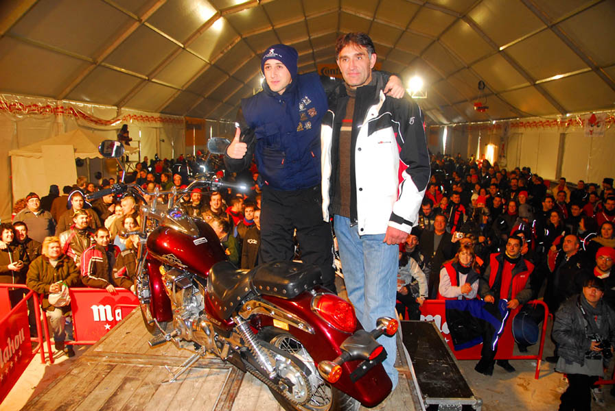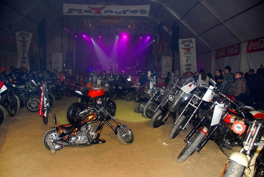 Había más tiendas y mejor colocadas; había más oferta de restauración con más variedad y buenos precios; la zona de acampada estaba mejor aprovechada; el servicio de seguridad estaba redoblado y controlaron con eficacia que los pocos “espantaviejas” y “paseaterrazas” que hubieran entrado a la concentración se sintieran aislados y fuera de lugar, hasta el punto de que el viernes por la noche yo no oí ni un solo acelerón más alto que otro; la excursión a Matapozuelos fue un autentico éxito que desplazó más de 1700 motos, y no podía ser de otra manera, pues lo que esperaba era ver una estupenda actuación de Narcis Roca, la posibilidad de hacerse fotos con Randy Mamola y un potente aperitivo, poco importaba que una densa niebla como puré de guisantes se hubiese colocado sobre toda la provincia, haciendo que la temperatura descendiese varios grados respecto a la jornada anterior y haciendo poco agradable la conducción en moto, la excursión lo merecía.