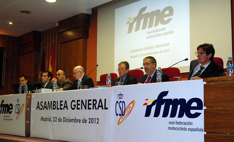 El Colegio de Ingenieros de Canales, Caminos y Puertos ha sido el escenario en el que el pasado sábado 22, se ha celebrado la Asamblea General Ordinaria 2012 de la RFME. Se ha tratado de la primera de la presidencia de Ángel Viladoms, recientemente elegido máximo responsable de esta Federación.