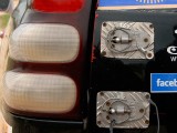 Exteriormente, los principales detalles que se aprecian son las medidas de seguridad de un coche de rally, cortacorrientes y accionado de extintores en el capó, cierres de seguridad en capó y portón trasero y el Snorkel. Fijándose más, podemos ver la toma de llenado del deposito de gasoil, situada en el lugar que ocuparía la ventanilla más retrasada del lado izquierdo. Los neumáticos para la ocasión eran unos Bridgestone Dueler A/T en medidas 265/70-16.