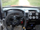 Los principales cambios están en la cabina, dominada por las barras antivuelco y las redes de seguridad en cada ventana. Un volante deportivo es lo primero que ve el piloto, que a su derecha, en la consola central, tiene situada una batería de relojes de presión de aceite, temperatura de aceite, de agua, presión de turbo, nivel de gasolina.