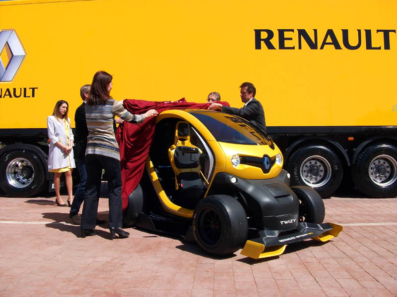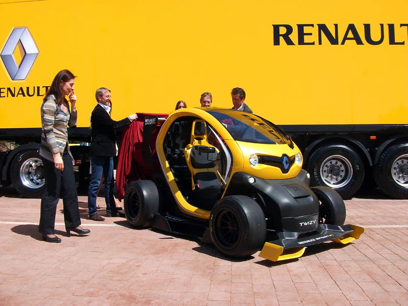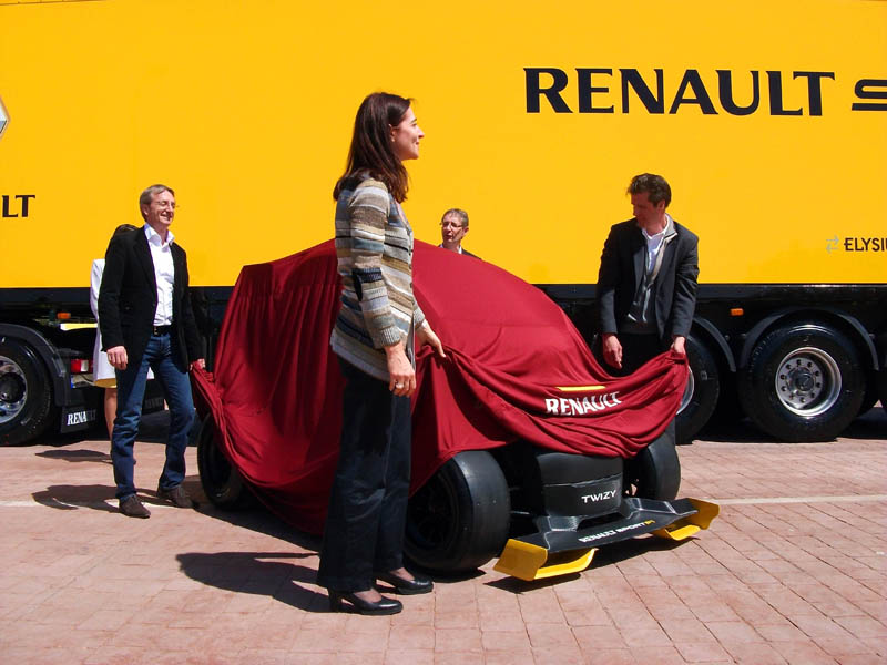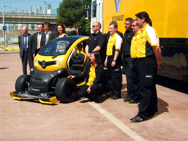 Durante el Gran Premio de Europa celebrado en Valencia el 21 de junio de 2012, en el motorhome de Renault Sport F1, tres personas charlan. El jefe de proyecto del KERS de Renault, Laurent Debailleul, que ha participado en la puesta a punto del motor de Twizy, dice que ha podido establecer coincidencias con las tecnologías de la F-1, y en tono de broma dice: “¿Para cuándo el KERS en un Twizy?”.