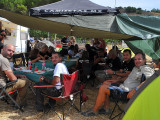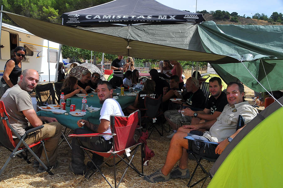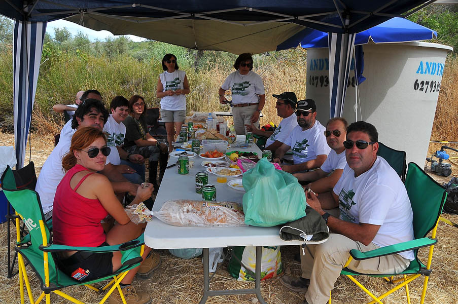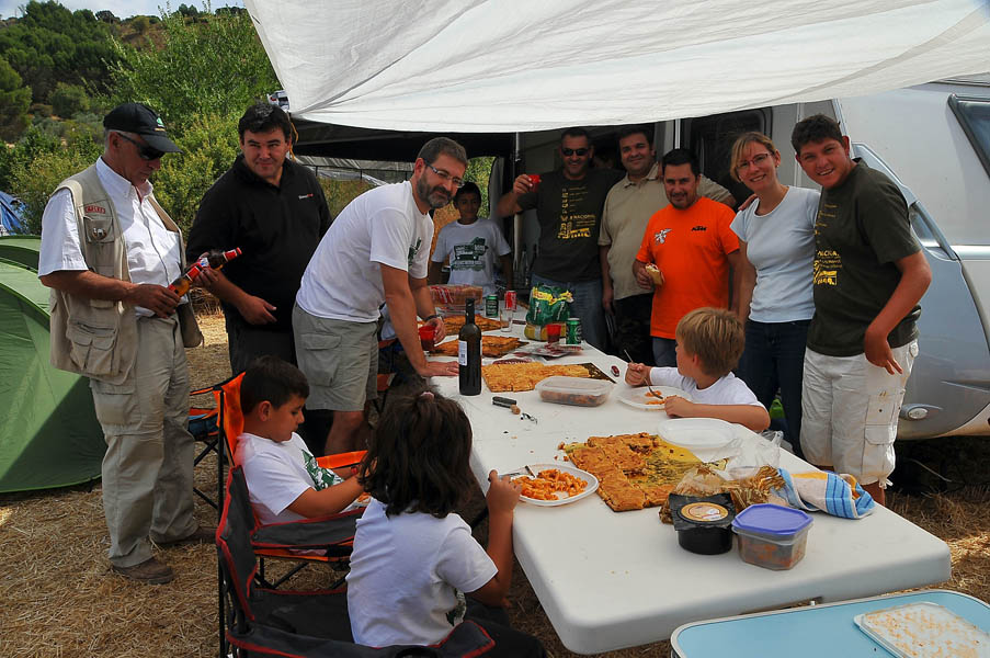En cualquier caso, hacia el mediodía, la mayoría de asistentes regresaron a la zona de acampada para tomar un refrescante baño alguno, y para dar buena cuenta de las viandas que todos trajeron; parrillas, planchas y alguna monumental paella tomaron el protagonismo que merecían en el momento justo, y el hambre unido a la buena charla que estos momentos favorecen, permitían ver la cara de satisfacción de unos participantes que ya solo con la mañana del sábado llevaban un buen bagaje de satisfacciones.