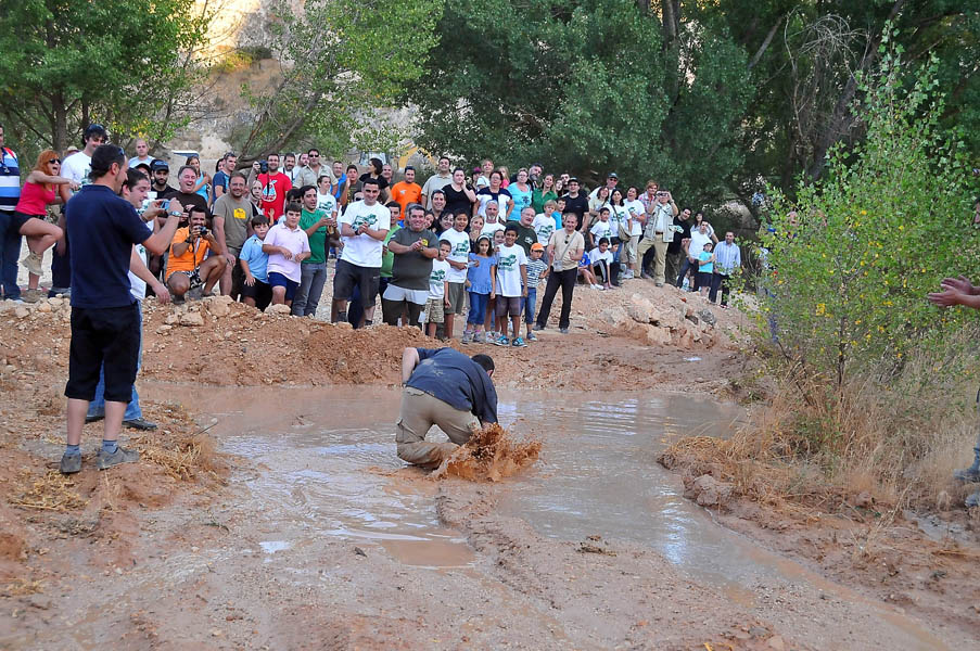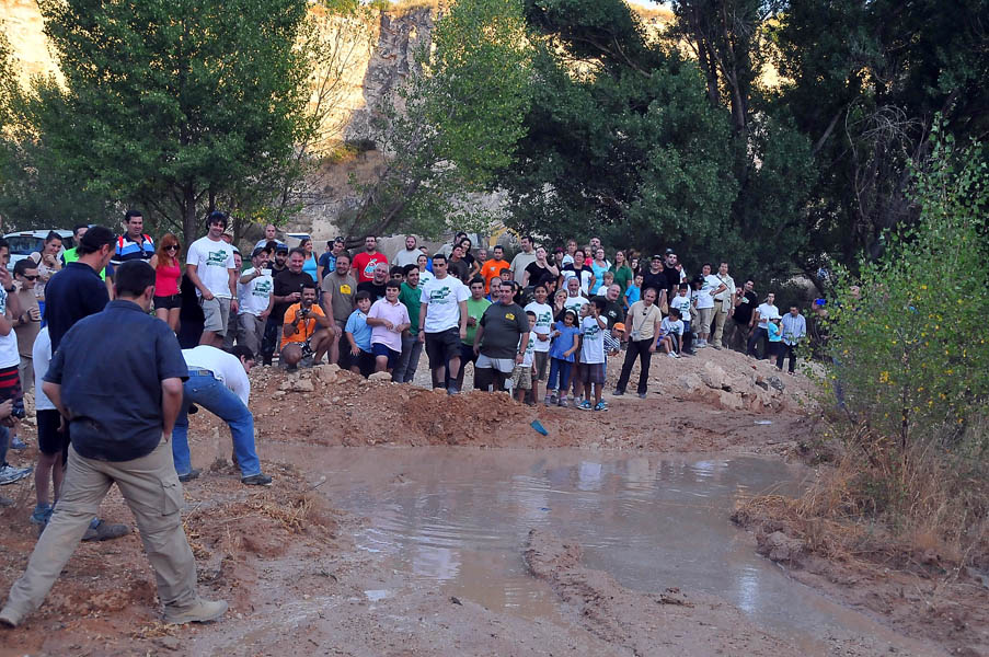 En cuanto al circuito en sí, solo decir que era perfecto, ya que contaba con zonas de muy diversa dificultad, lo que permitía que cualquier aficionado encontrase una zona o un paso apropiados para su nivel de conducción y grado de preparación de su coche. Un circuito donde desde un balancín de madera, donde alguno lo pasó peor que mal, hasta subidas con distintos grados de inclinación o agarre, pasando por cruces de puentes y alguna entretenida poza donde “maquillar” el coche, no le faltaba de nada.