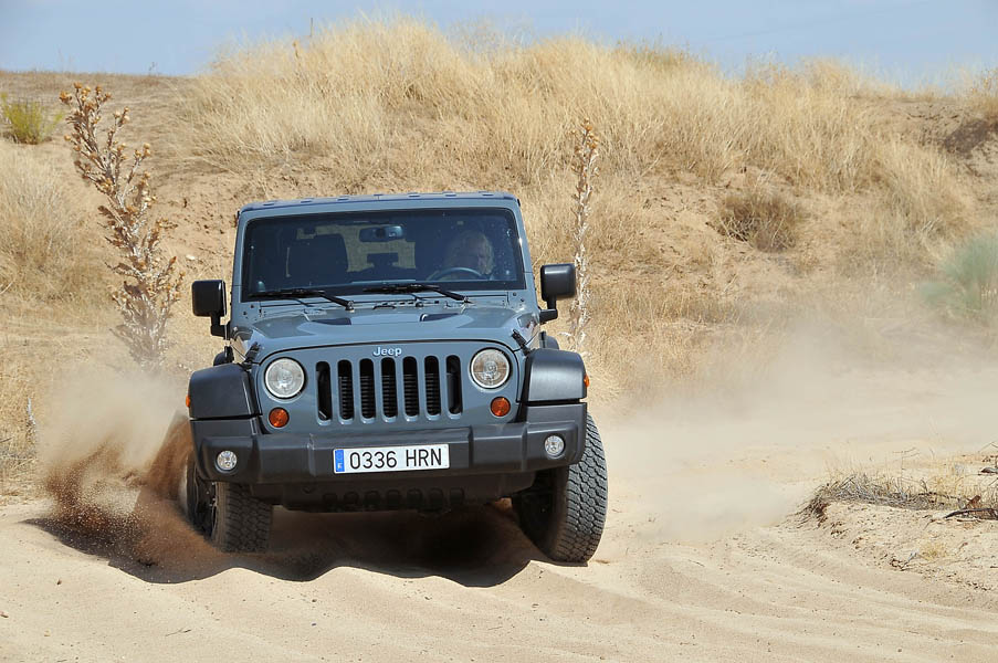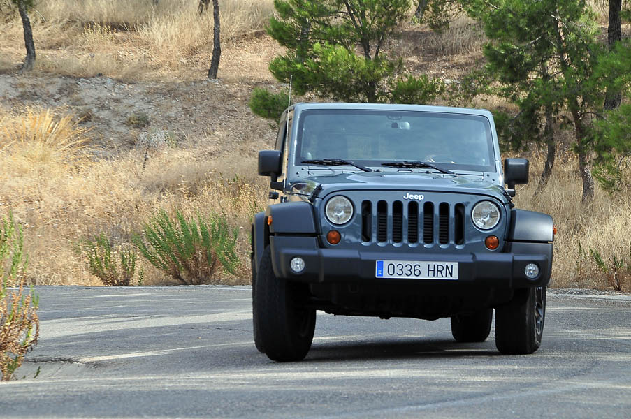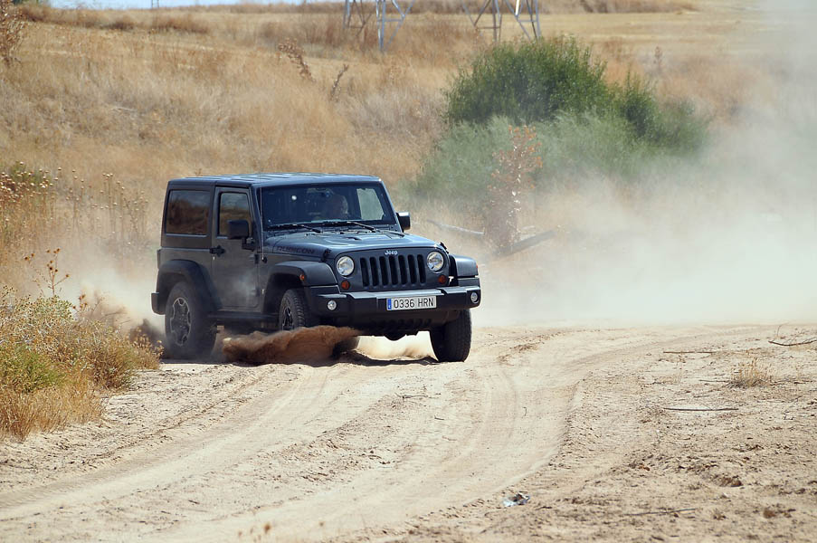 Aunque los avances en electrónica, motores, neumáticos, etc. han hecho milagros en las últimas décadas, hay cosas que hoy por hoy son imposibles, y una de ellas es que un coche que vaya magníficamente bien por el campo lo haga también por carretera (y viceversa), el Jeep Rubicon no se escapa de esta “verdad universal”, y la carretera le gusta lo justito. Lo mínimo imprescindible para poder desplazarse a su hábitat natural se encuentre este donde se encuentre.![]()