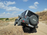 Con una altura libre de 26 cm., un ángulo de ataque de 38º, ventral de 25,5º y de salida de 31º; unas protecciones de bajos aceptables (no son lo que yo le pondría, pero tienen derecho a llamarse protecciones; lo que suele traer el resto es simplemente de risa), y unos neumáticos mixtos, pero realmente más enfocados al campo que al asfalto, como son los Goodyear Wrangler en medidas 245/75 R 17, tenemos todo lo necesario para irnos de expedición, necesitando como única preparación ponerle las pegatinas que más nos gusten. Sin duda un coche diseñado por y para el campo.