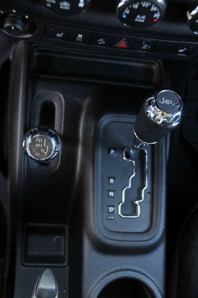Lo mismo sucede cuando atacamos grandes cruces de puentes, de esos que te quedas con dos ruedas en el aire. El coche avanzará hasta que una rueda de cada eje empiece a patinar, momento en que activaremos el bloque trasero y el coche seguirá avanzando; solo en situaciones muy extremas, en que además de la inclinación y el cruce de puentes, tengamos un terreno deslizante, necesitaremos meter el bloqueo delantero e incluso, liberar la estabilizadora delantera para tener mayor recorrido de suspensión… si con todo ello no pasas por el obstáculo que estás intentando… bájate del coche y hazle unas fotos, te gustará enseñárselas a los amigos. Esa sensación con un coche de serie solo la había sentido con el Mercedes G, pero en su contra aquel tenía casi una tonelada más de peso. Como detalle adicional, también dispone de un elemento imprescindible en TT automáticos como es el control de descensos, aunque en el caso del Rubicón y con tanta reducción de sus cortas, se podría pasar sin él.