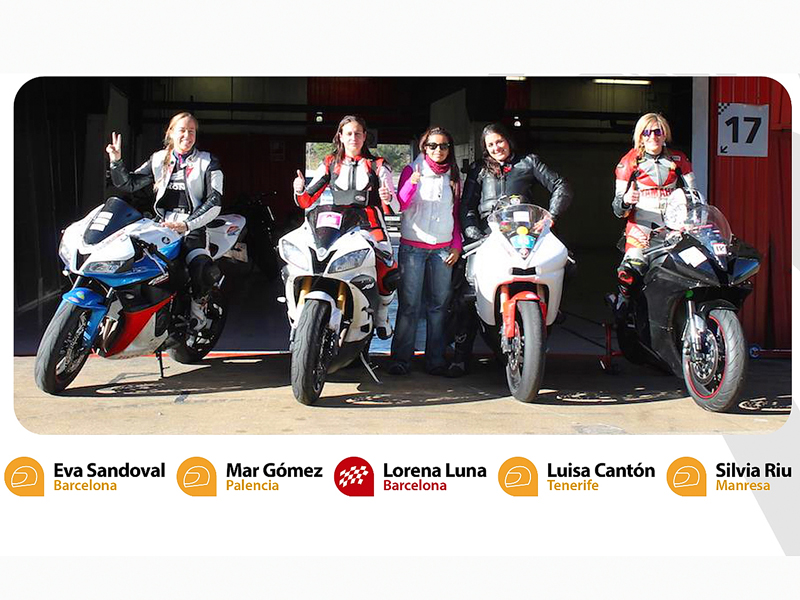 Todas son mujeres en el equipo, pues además de las pilotos, están Lorena Luna como responsable del RacingBCN, y Alba Fité como mecánica, entre otras. Competirán en la categoría Superstock 600 con una Yamaha YZF R6R y también en las subcategorías de Féminas y Debutantes.