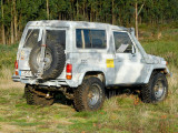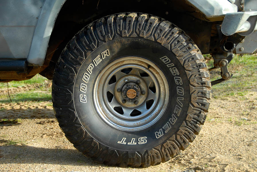 Al comprarlo Michele, el coche estaba completamente de serie, y lo primero que se le hizo fue ponerle las taloneras, las defensas delantera y trasera, diseñadas por el propio Michele, ruedas 255-85/16 (algo más de 33”), se le colocaron separadores en un primer momento, y aunque posteriormente se cambio a una llanta con más desplazamiento con intención de quitarlos, finalmente también se dejaron y se pasó a unos neumáticos Cooper Discoverer STT de 35”-12.50/15