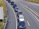 Para el domingo por la mañana había prevista una actividad especial, que era la de batir el Record Guiness de Land Rover en movimiento, actividad a la que en una mañana gris, y con una intensa lluvia, se apuntaron la cantidad de 1580 coches!, cantidad más que suficiente para conseguir el record pero que a estas fechas aún no está homologado debido al parecer a que algunos conductores dejaron más espacio del que debían entre ellos y los coches que les precedían, lo que de alguna manera incumplía la forma en que había que hacerlo.