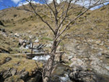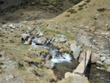 En un punto nos encontramos varias indicaciones. Nosotros aún a sabiendas de que después habrá que deshacer el camino, cogemos hacia la izquierda, en dirección a la Mina Zaragoza, quizás la más antigua mina conocida del valle de Ribes. A cerca de 1.700 m de altitud, su boca de acceso está un poco elevada por encima de la pista principal que recorre el valle del torrente del Estremera