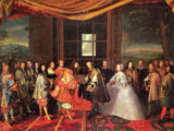 Entrevista de Luis XIV de Francia y Felipe IV de España en la Isla de los Faisanes en 1659 según el cuadro pintado por Velázquez