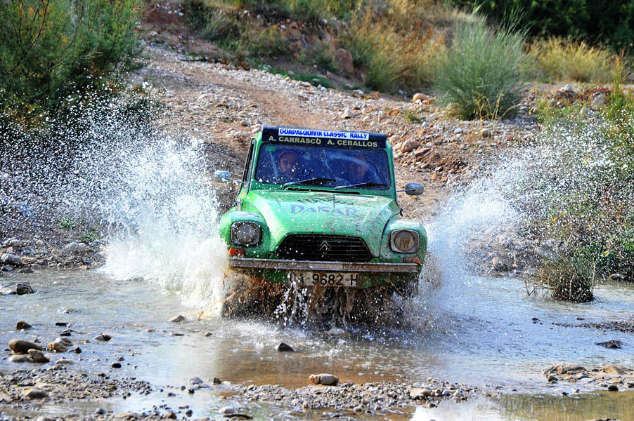 Vadeos, estrechas pistas y el omnipresente olivo, eran los protagonistas de una etapa, que como decimos, se mantuvo seca hasta terminar el tramo de regularidad, momento en que empezaba a llover.