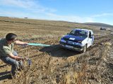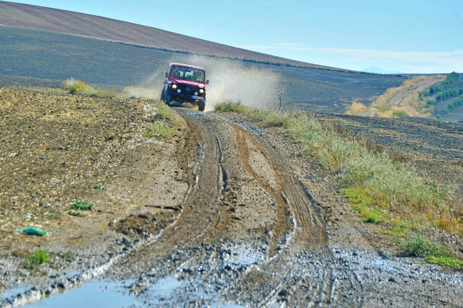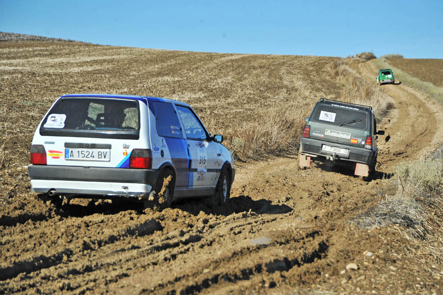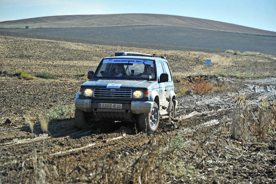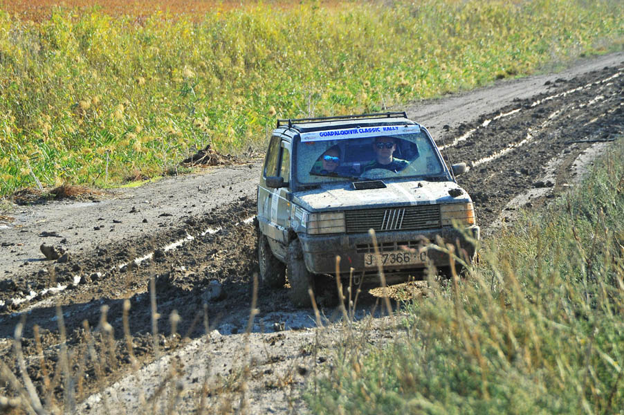 A continuación, una larga subida embarrada, conseguía un doble y antagónico resultado: por una parte, que los todo terreno disfrutasen de largas derrapadas y pusiesen sobre la mesa sus aptitudes camperas; por otra, que los vehículos 4×2 lo empezasen a pasar mal y necesitaran echar mano de la solidaridad de sus hermanos mayores. Todo perfecto, pues es precisamente esa parte de aventura que se vive en los vehículos más pequeños, con la de solidaridad aportada por los más grandes, el ADN del Guadalquivir Classic Rally.