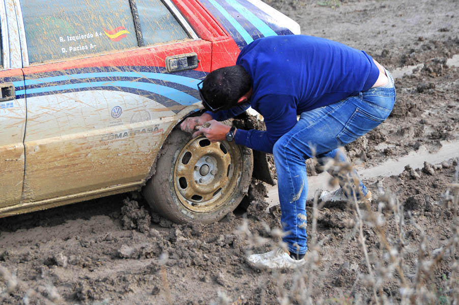 El problema estaba más adelante, donde un largo tramo, embarrado, se presentaba imposible para los vehículos de tracción simple y muy complicado para los 4×4, que con mayores o menores dificultades podrían haber llegado a pasar (quizás solo los primeros coches mientras las roderas no estuviesen muy pisadas y fuesen demasiado profundas), pero que de ninguna manera podía garantizar que los coches de organización pudiesen acceder a socorrer en caso de accidente.