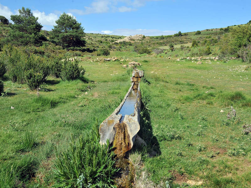 Seguimos dirección norte por la pista que nos asciende hasta el Puerto de Terriente, ofreciéndonos unas estupendas vistas; a nuestro paso van surgiendo bebederos en medio de verdes praderas, alguna que otra perdiz, un paisaje más abierto que el que traíamos anteriormente, hasta que llegamos a las inmediaciones de Terriente, en que salimos a una vieja y descarnada carretera.