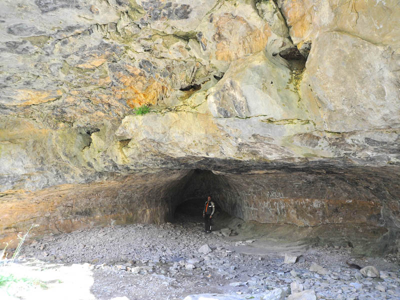 Damos la vuelta y ahora si, paramos para acercarnos a la entrada de la Cueva de la Obriga.