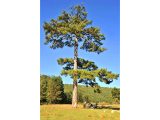 Su silueta presenta un fuste recto y las ramas se desarrollan en la copa y a media altura. Se localiza en el paraje de La Majada, de forma aislada, ya que fue respetado de la tala por ser un ejemplo del porte que puede llegar a alcanzar la especie. Solo con ver el tamaño de la F-850 GS y el Mini que hoy nos acompañan junto el pino, nos podemos hacer una idea de sus dimensiones.